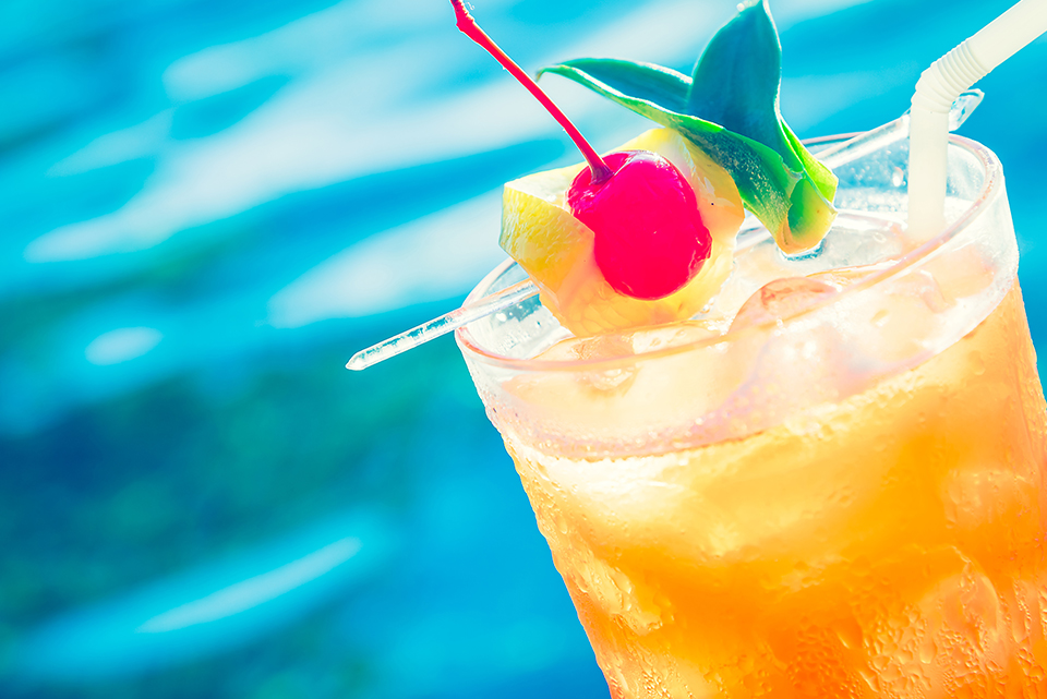 Ginebra, Agua tónica, cubos de mango fresco y pimienta negra